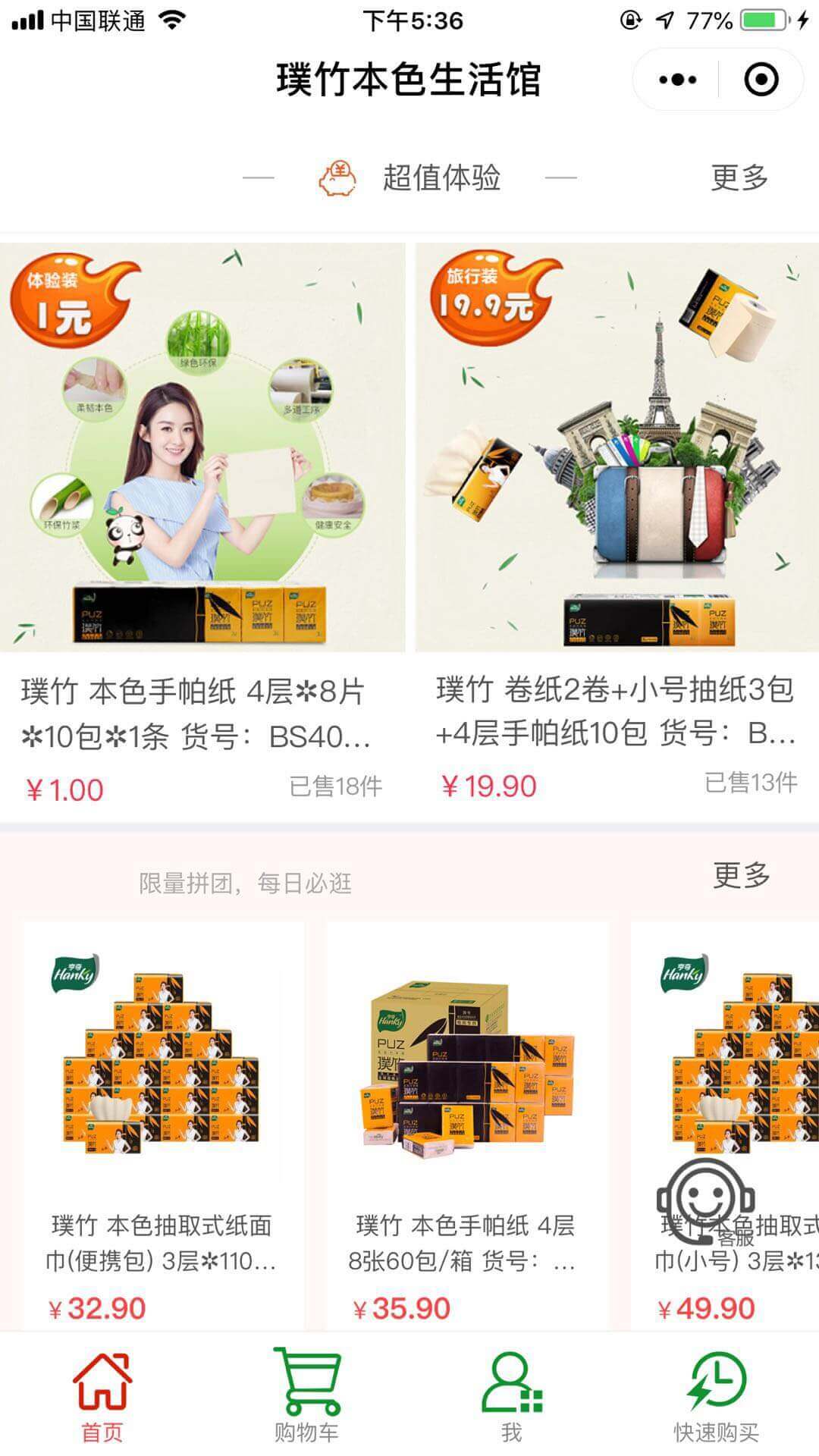 璞竹本色竹浆纸是国内500强上市企业理文造纸集团旗下直属的生活用纸高端品牌系列。本商场主要推广哼奇品牌的璞竹系列本色竹浆纸,去除中间环节,将好产品直接从厂家带到用户手中,为用户带来质优价廉、健康环保的生活用纸。